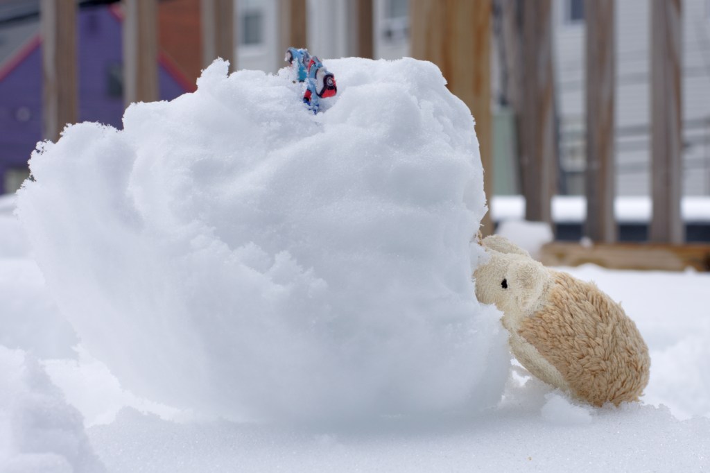 “Melt, melt,” huffed Nelson as he prodded the snowball toward the warmth.