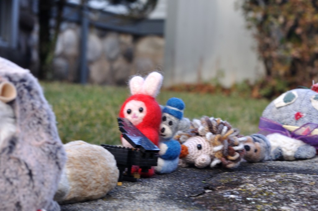 She waited for the Cat & Hedgie Club. Suddenly, a beautiful bunnie began to play the piano and sing. This was Ichigo. Then Mr. President arrived. He was a well-fed cat, and took his place in the center of the yard. Then the others came.