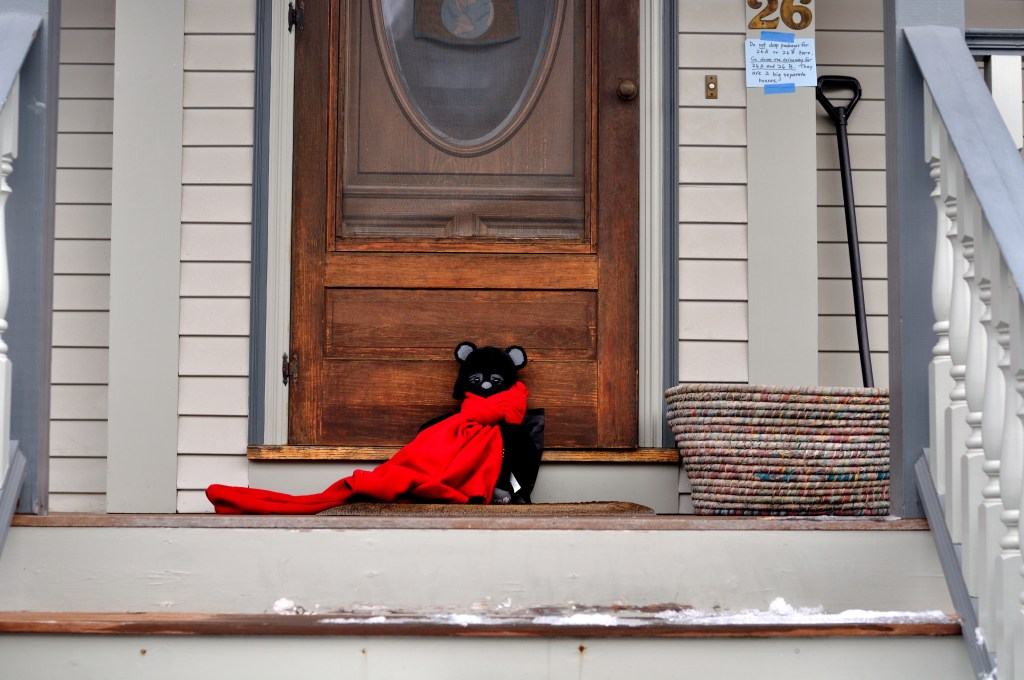But all at once a fierce bear, whom the Cat and Hedgie Club had christened “Vader the Thief,” rushed out of a cellar, grabbed Meow’s scarf and ran off with it.